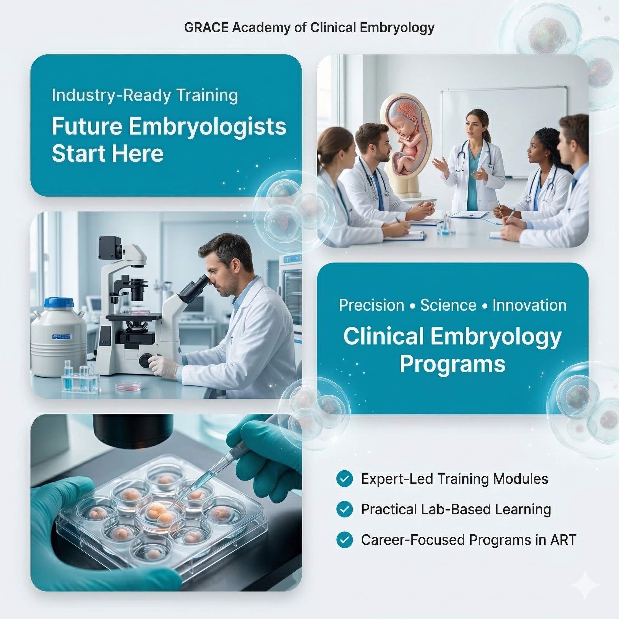 GRACE Embryology Institute is a premier training center based in Gurgaon, dedicated to shaping the next generation of skilled embryologists and IVF professionals. With a strong focus on practical learning, advanced laboratory exposure, and industry-oriented education, we provide comprehensive embryology training programs designed to meet global standards. Affiliated with SunRise University, our institute ensures that every course is backed by recognized academic excellence and structured certification. We combine theoretical knowledge with hands-on laboratory training, enabling students to gain real-world experience in assisted reproductive technologies (ART), IVF procedures, and modern embryology techniques. At GRACE Embryology Institute, we understand the growing demand for qualified embryologists in the fertility sector. Our mission is to bridge the gap between academic learning and clinical expertise by offering specialized training modules, expert mentorship, and state-of-the-art lab infrastructure. Our programs are ideal for life science graduates, medical professionals, and aspiring embryologists who want to build a successful career in IVF and reproductive science. We emphasize precision, ethics, and innovation, ensuring our students are fully prepared to work in leading fertility clinics and research centers.