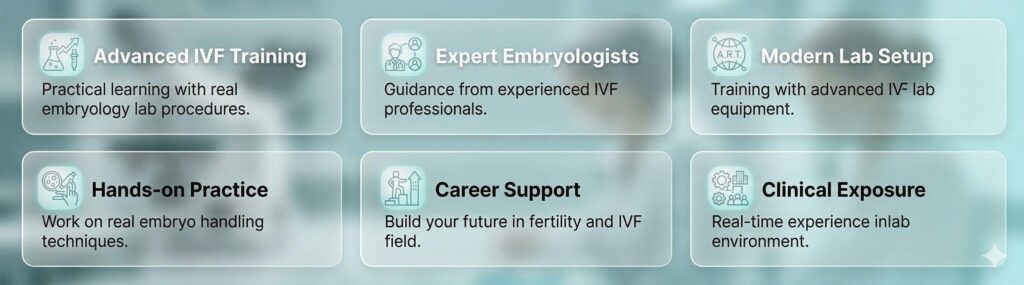 Our institute is equipped with state-of-the-art IVF laboratory infrastructure that replicates real clinical settings, allowing students to experience hands-on training with advanced equipment. Guided by experienced embryologists and medical professionals, learners gain deep insights into real-world challenges and solutions within fertility labs.